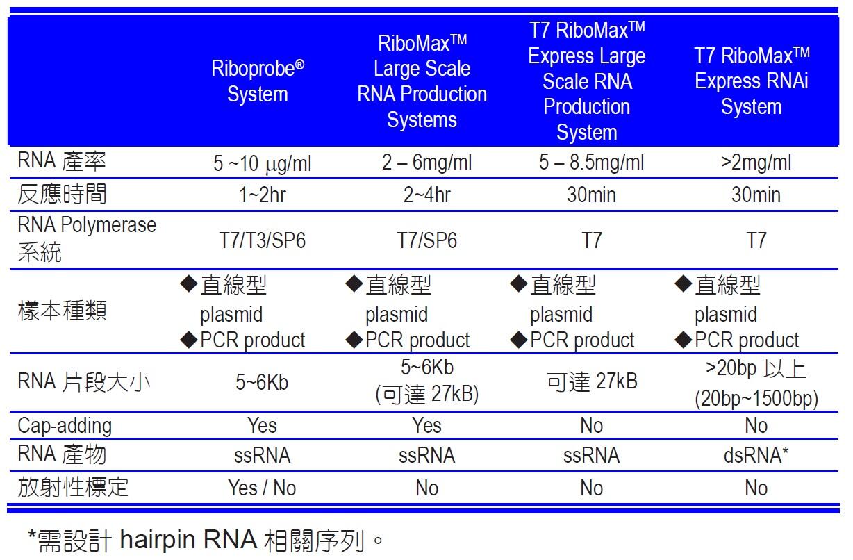 在此,僅列出Promega 全系列產品不同特色與優勢供您作選擇,依您不同需要,作適當的選用,請參閱上表: